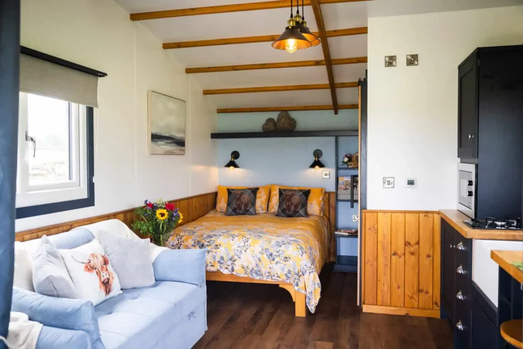 Robin did most of the practical work, and I focused on making sure every detail inside was right. We wanted it to feel like a proper retreat, not just somewhere to sleep. Warm, comfortable, with everything in its place.
